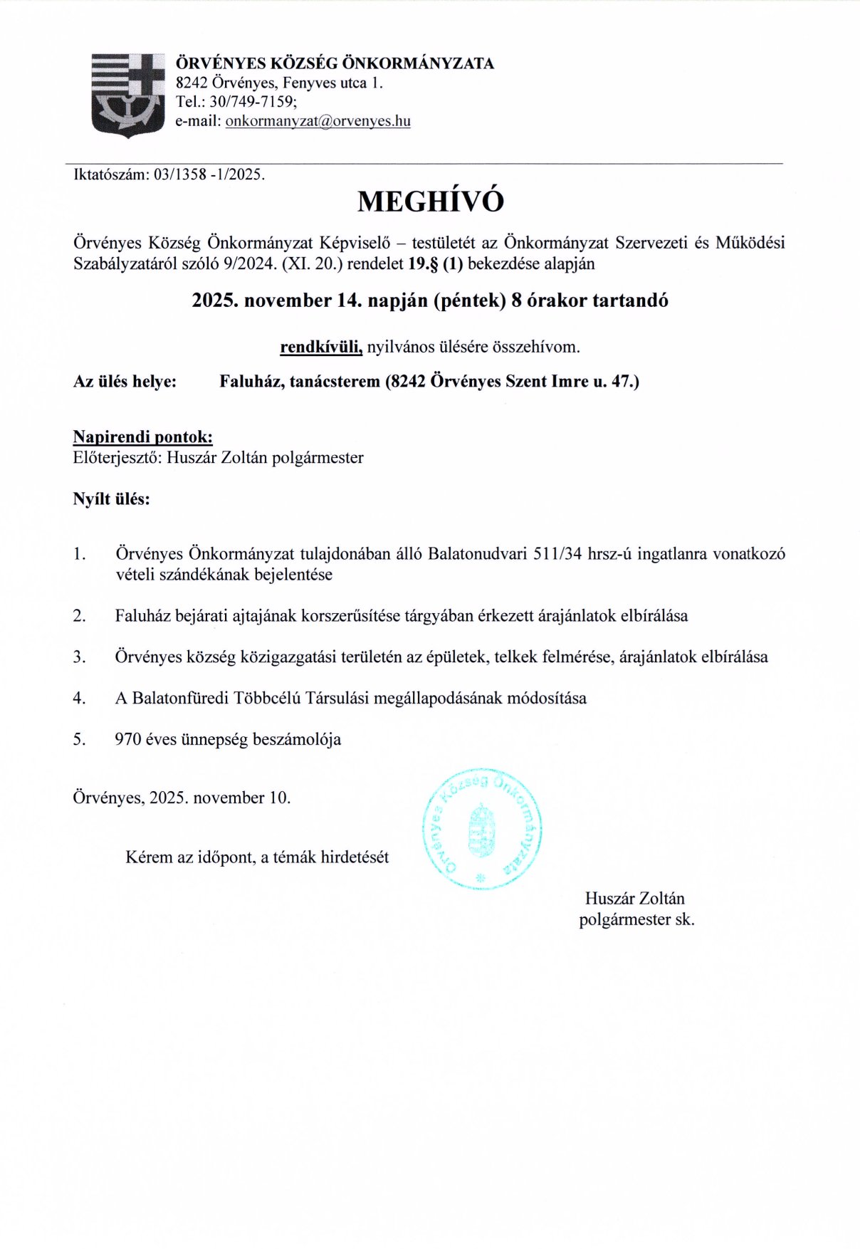 NOVEMBERI HÍRLEVÉL 2025.10.29
